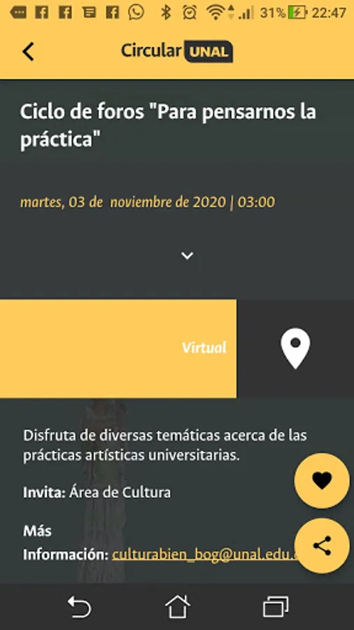 Events calendar of the National University of Colombia