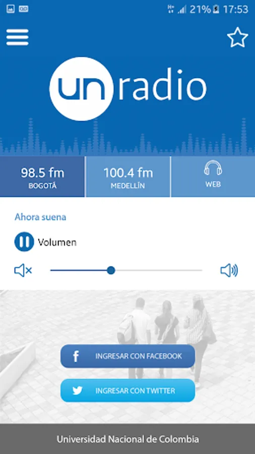 UNRadio university is a means of communication, public and cultural interest, which records the social and cultural diversity of contemporary society, at frequencies of Bogota, Medellin and UNRadio Web. Incorporates in its various programming genres, analysis, communication and information of local, national and international problems as a result of the activity and capacity of experts available to the National University of Colombia.