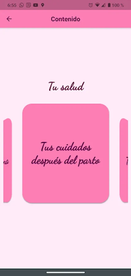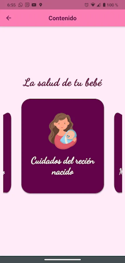 All you have to do is log in and you will have access to all the content of the application. Clavel is organized into two main modules: "Your health" and "Your baby's health" and each of these contains updated information prepared by health professionals who are experts in maternity and newborn care.