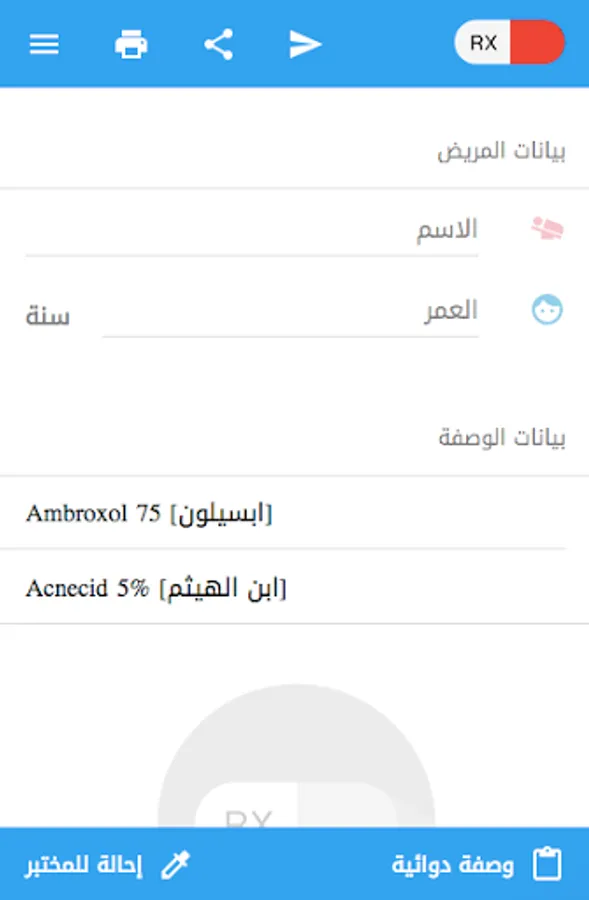 - The doctor can share and send the recipe through Watsab or Messenger to a doctor or someone else if needed.
