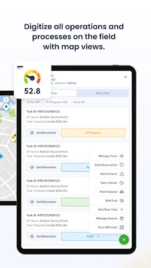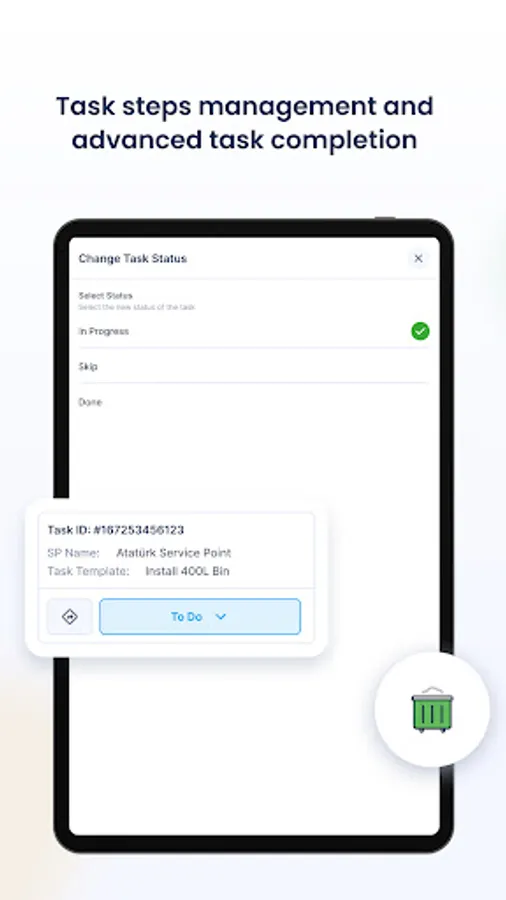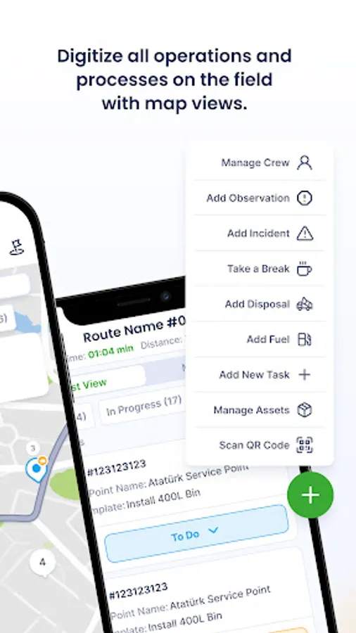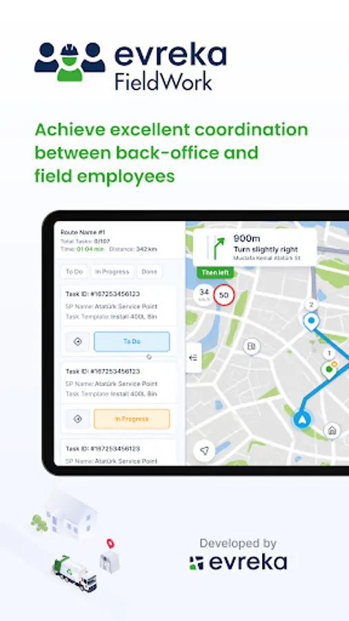 Field Work is a specially designed application that substantially facilitates the coordination between back-office and field employees working in the waste management industry and provides the advantages of minimum battery consumption and fewer tracking points when the screen is off. It digitizes all operations and processes on the field from beginning to end.