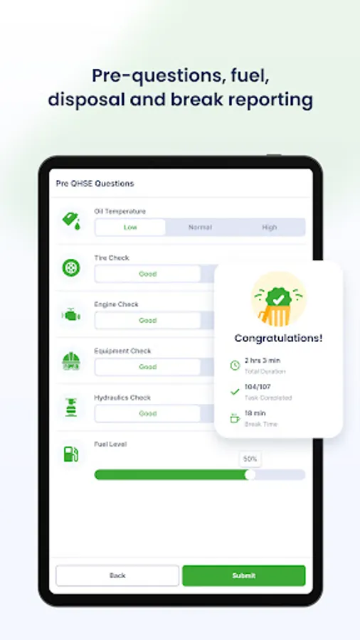 Health, Safety, Environment, and Quality (HSEQ) checklist interfaces with visual support
