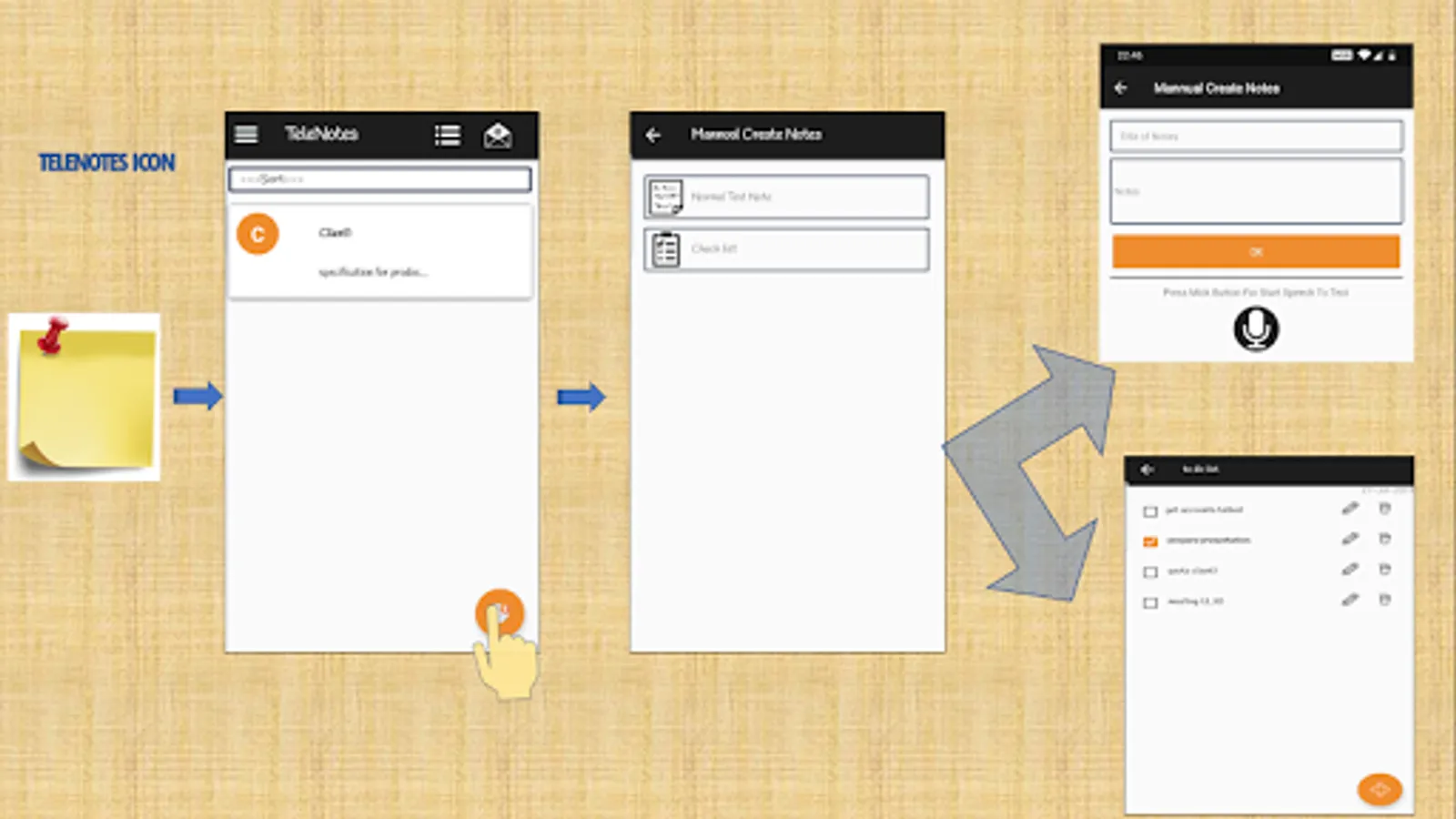 Its a note app with speech to text feature. The notes can be created with check list, can be edited, shared, copied and emailed. The note can be pinned to the notification bar and alarm can be set for the note.