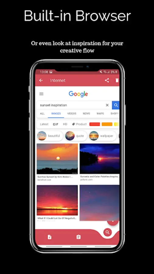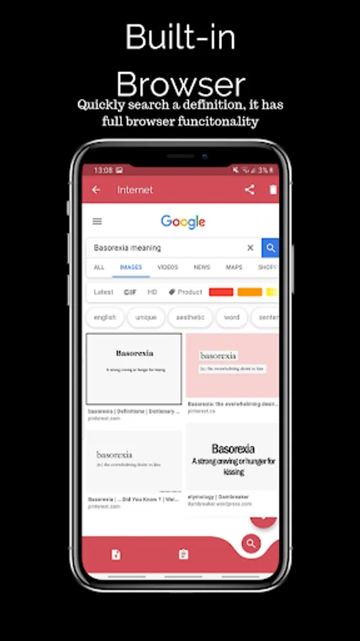 -A Built-in web browser, makes it easy to quickly see a definition or look at a image for inspiration.