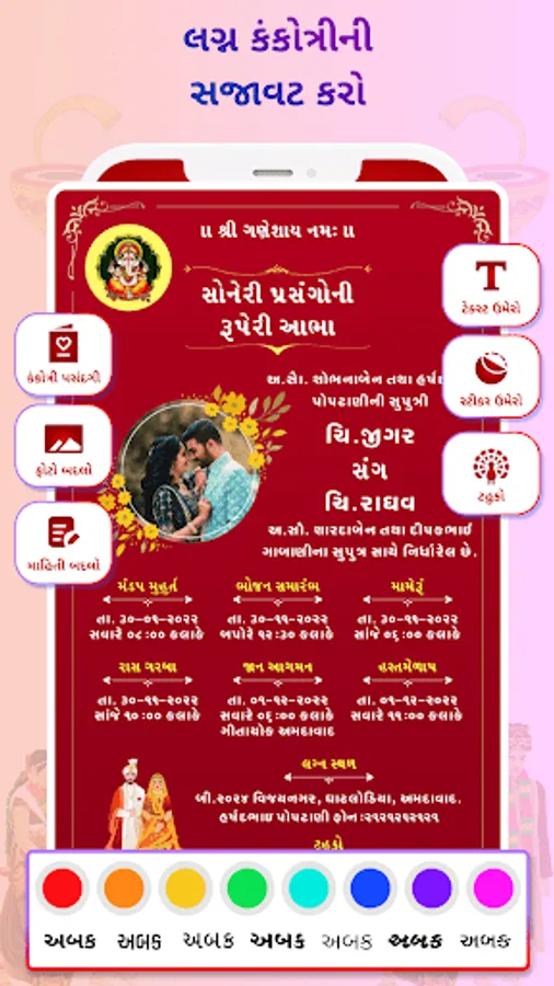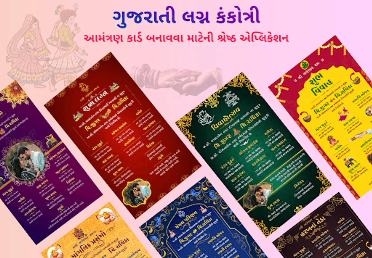Gujarati Lagan Kankotari is Gujarati wedding invitation card maker app which is use to create online wedding invitation card, Indian wedding cards