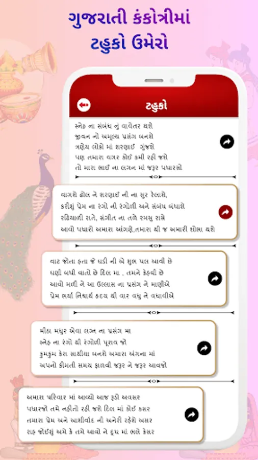 Add Gujarati Tahuko - ટહૂકૉ to make gujarati marriage invitation card more beautiful.