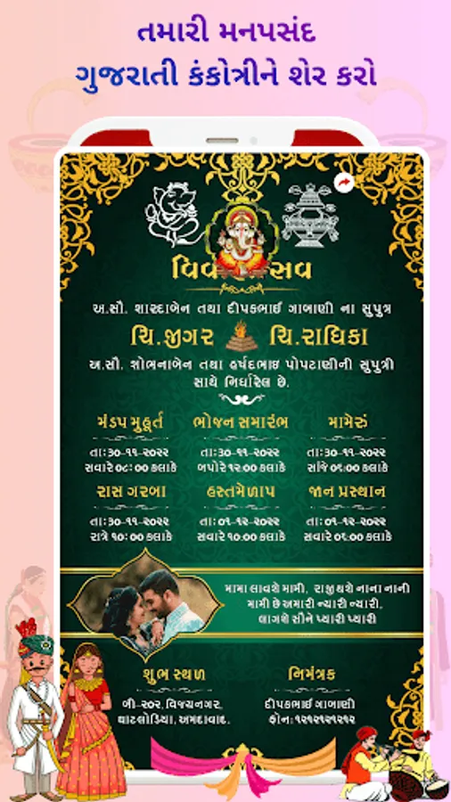 Gujarati Marriage Kankotari is use to generate Indian wedding invitations in Gujarati in your mobile without use of Paper.