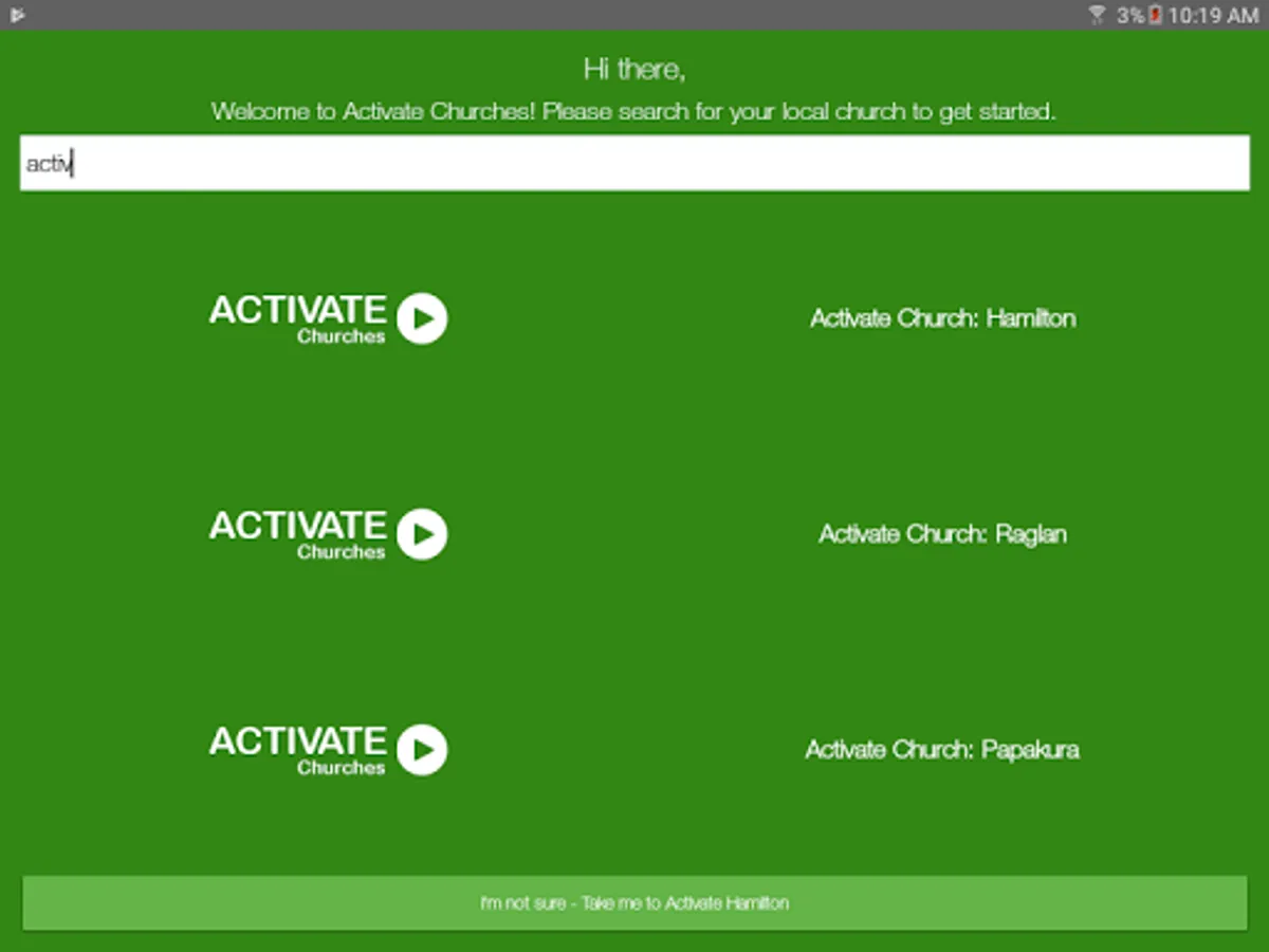 The Activate Churches app let’s you access all our core church communication in one easy-to-use app. You can access our event calendar, media, and a large library of pre-loaded content from Good TV and Resonate, along with heaps of other clever features. Simple search for your local church when you open the app and we'll customise everything to your campus.