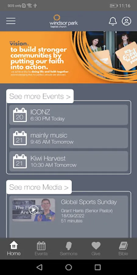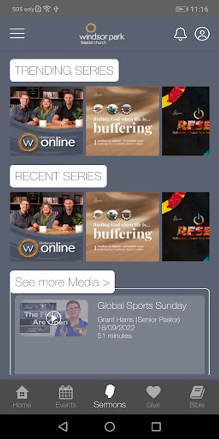 Windsor Park's app let’s you access all our core church communication in one easy-to-use app. You can access our event calendar, media, and a large library of pre-loaded content from Resonate and Good TV, along with heaps of other clever features.