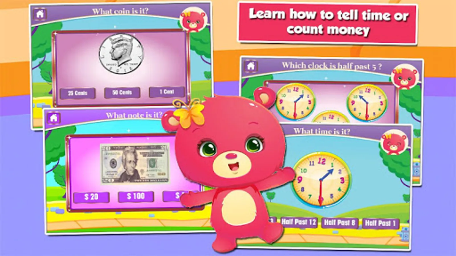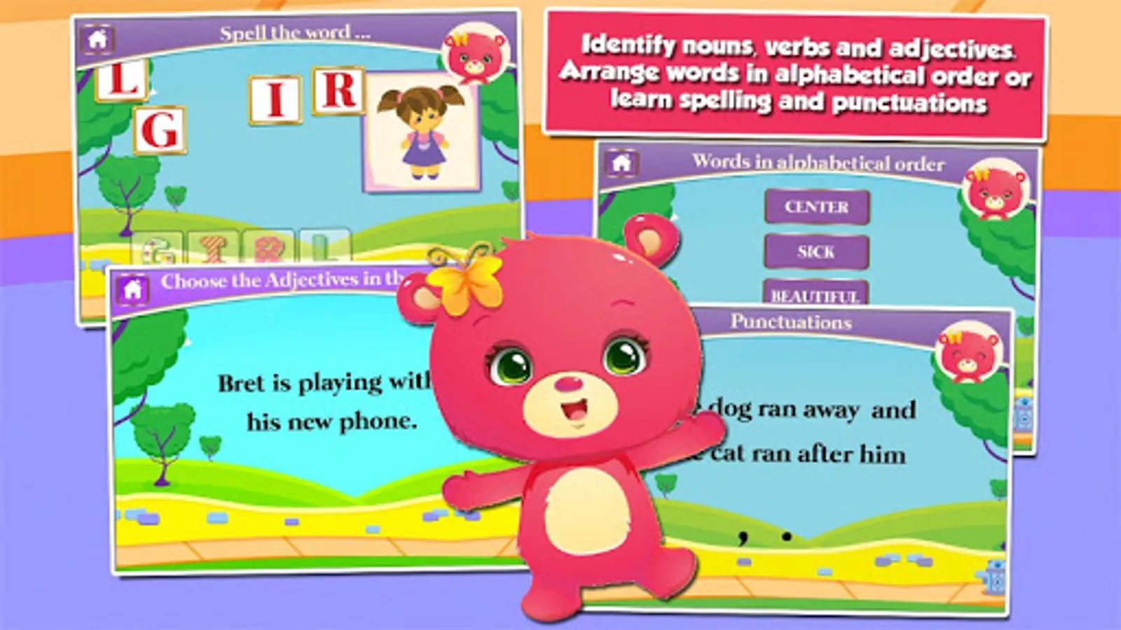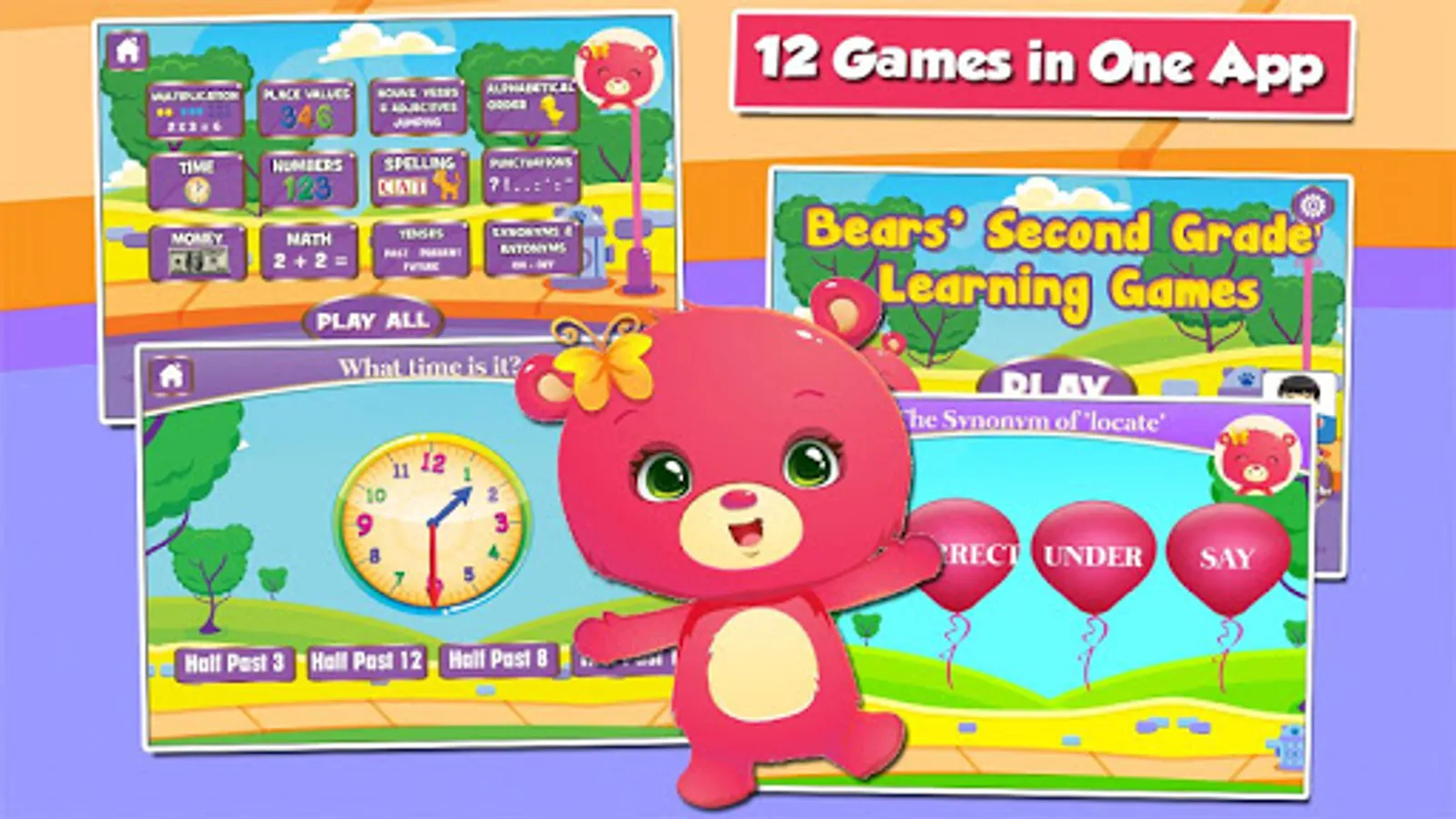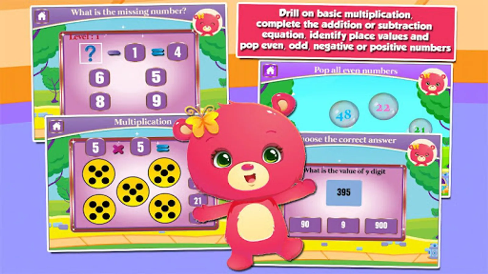 In Bear's educational games for kids, we developed a laid-back, fun-filled trip down the study lane to help you draw your children into learning the core concepts of Grade 2 Math and English.