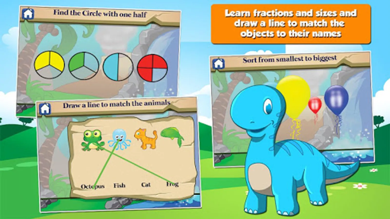 This dinosaur kid game a 1st grade educational games is perfect to those who want to practice and master basic math, simple words, grammar and vocabulary. Help your kids develop analytical thinking through a variety of activities in this game that will help them with the basics of first grade. It’s a great tool for parents to get involved in their kids’ studies.