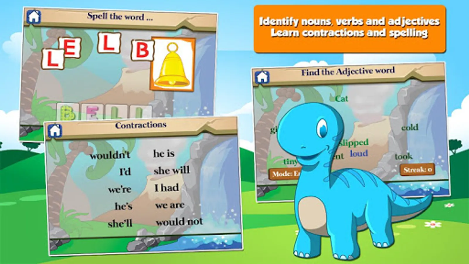 Join the fun exploration of kid dinosaur games and be amazed at how easy this adventure of first grade learning will make. Be at the top of your class by mastering all the activities in this app. What a fantastic time of learning! Let the dino kid motivate your first graders with positive encouragement that features professional narration, precise pronunciation and playful music.