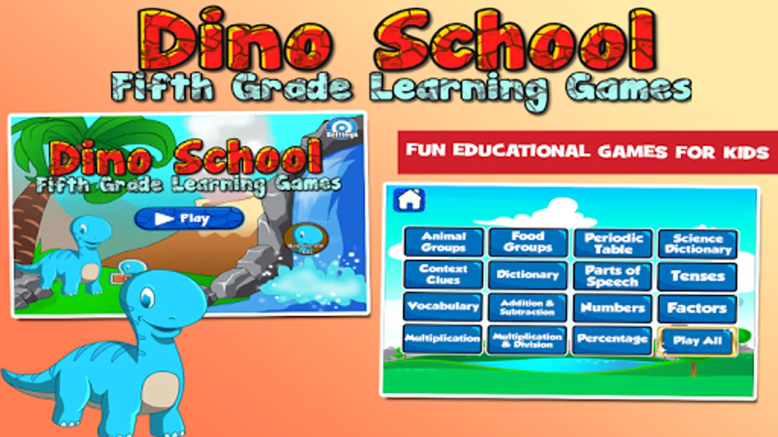 Welcome to Dino Land! Fifth Grade Learning Games has 15-games, including English, Math and Science games. Let's get started.