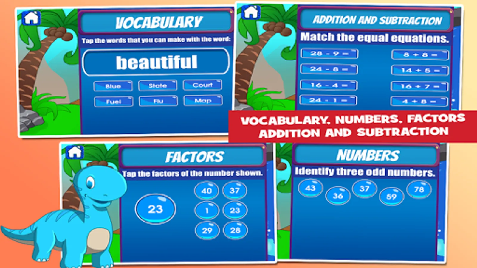 Be amazed at how easy this dinosaur-themed game, of fifth grade learning will make. This app features 5th grade reading, 5th grade math, 5th grade science and more 5th grade exercises.