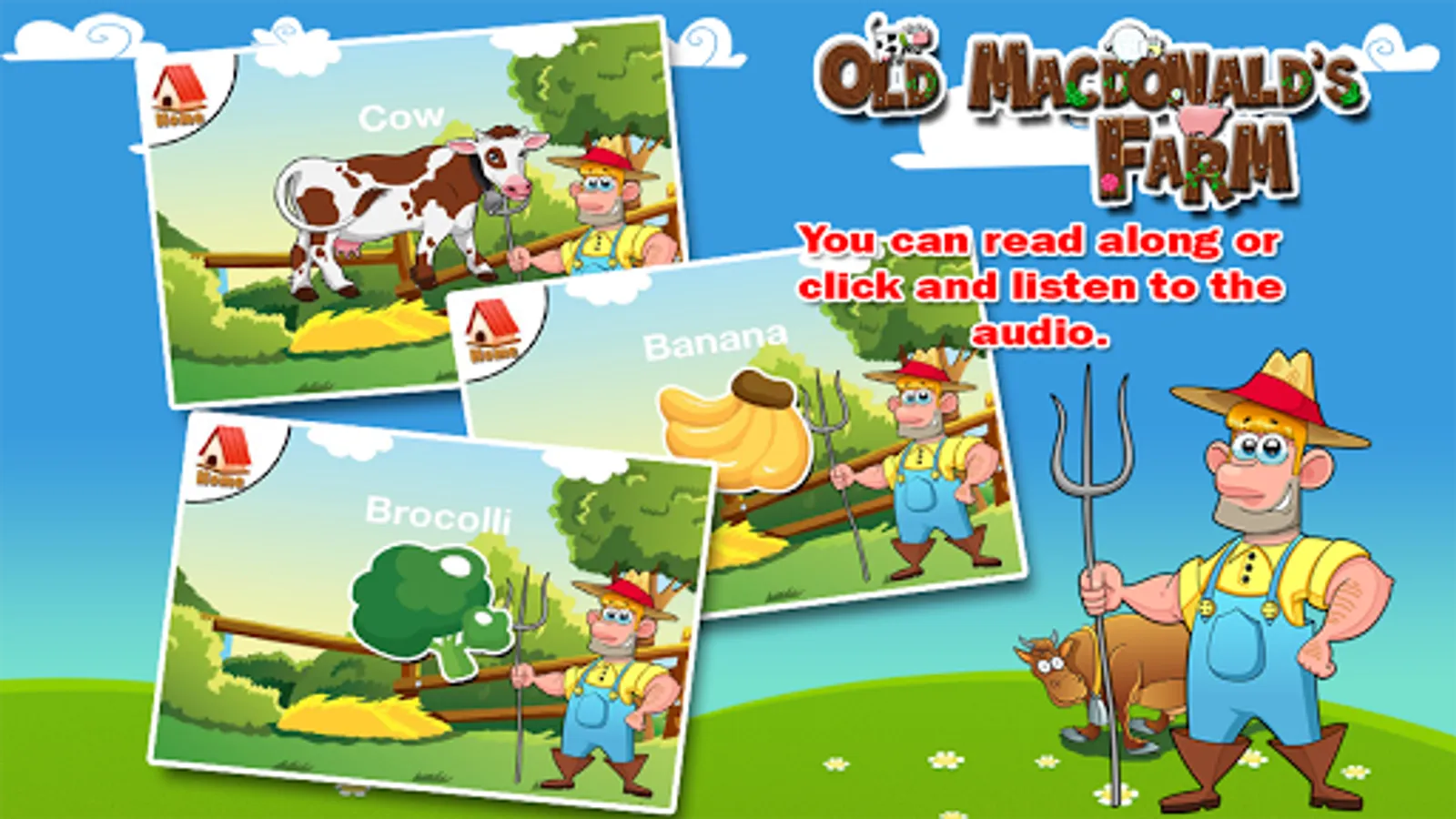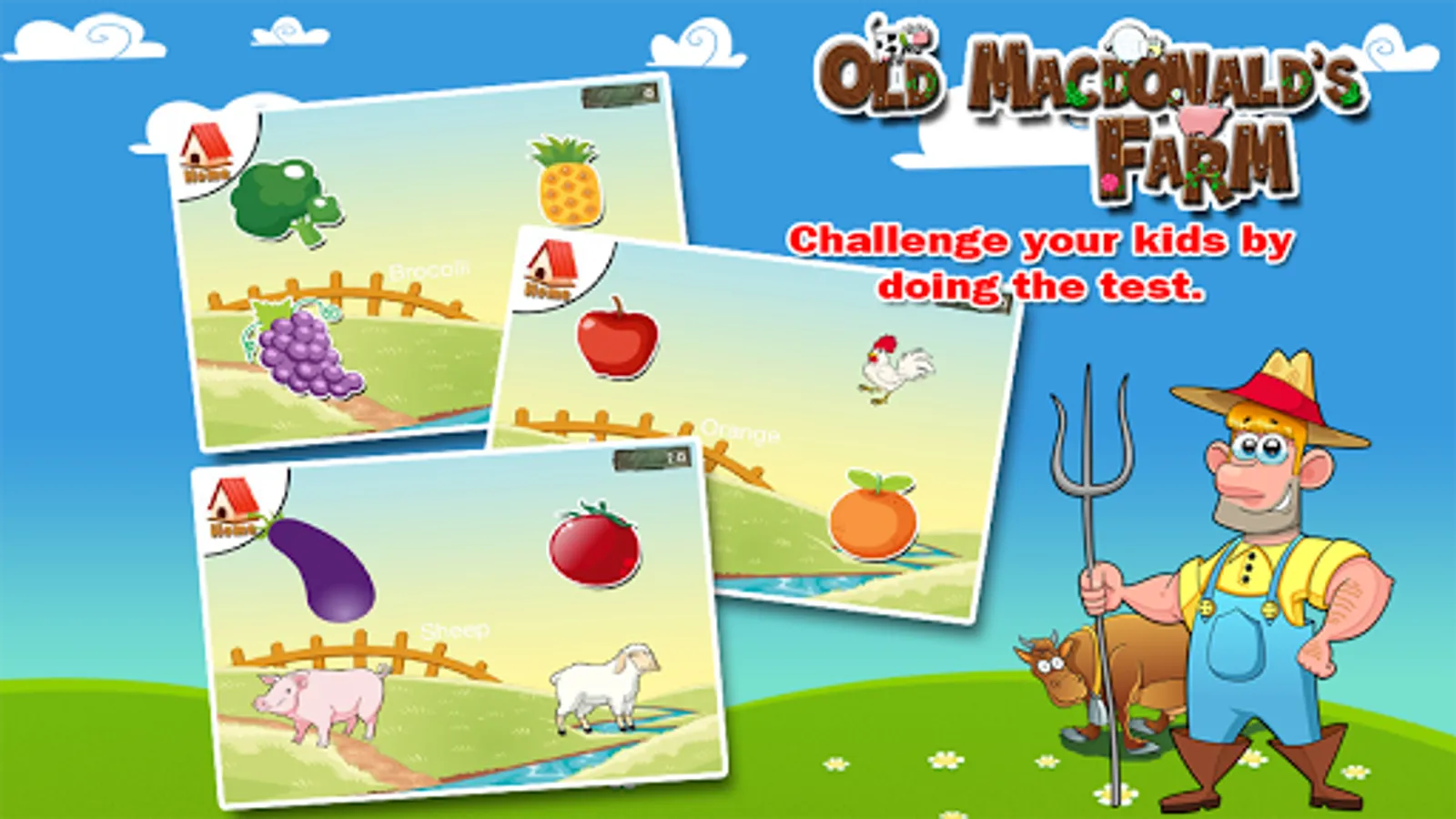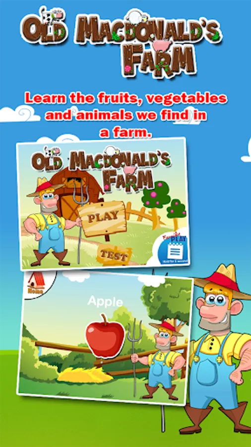 Old Macdonald’s farm is a fun, educational and yet, entertaining app for your kids. This is a farm game, an animal game, fruits game or even a vegetable game that will help your kids and toddlers recognize and be familiar with the different animals, fruits or vegetables we can find in a farm.