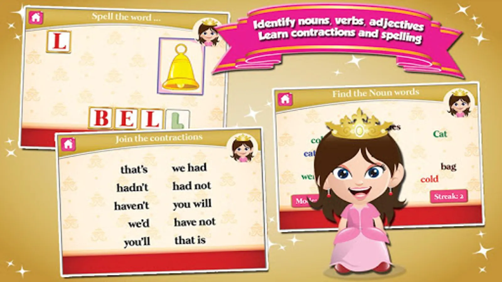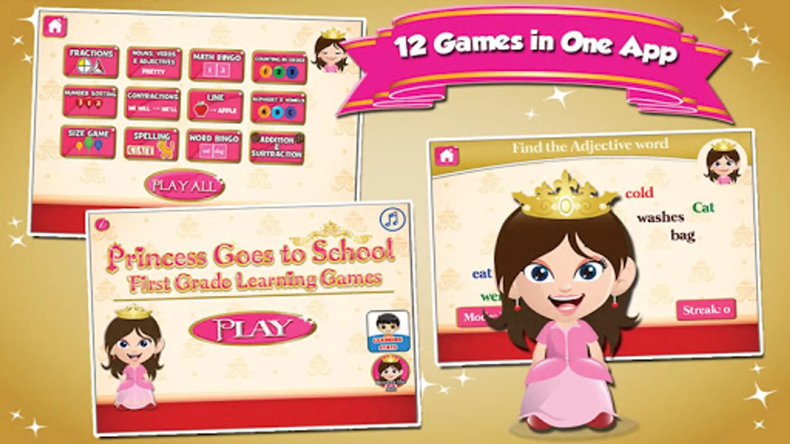 Be amazed at how easy this princess adventure of first grade learning will make. Join her royal princess game and be at the top of your class by mastering all the activities in this app. What a fantastic time of learning! Let the princess motivate your first graders with positive encouragement that features professional narration, precise pronunciation and playful music.