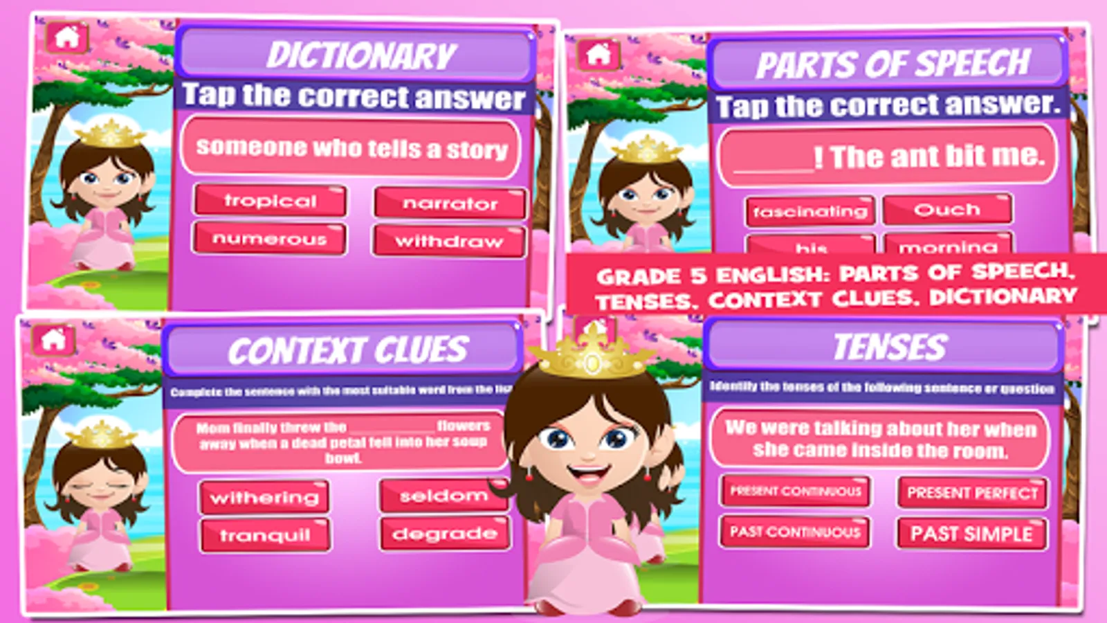 Be amazed at how easy this royal garden-themed game, of fifth grade learning will make. This app features 5th grade games, 5th grade vocabulary, 5th grade math games, 5th grade science and more.