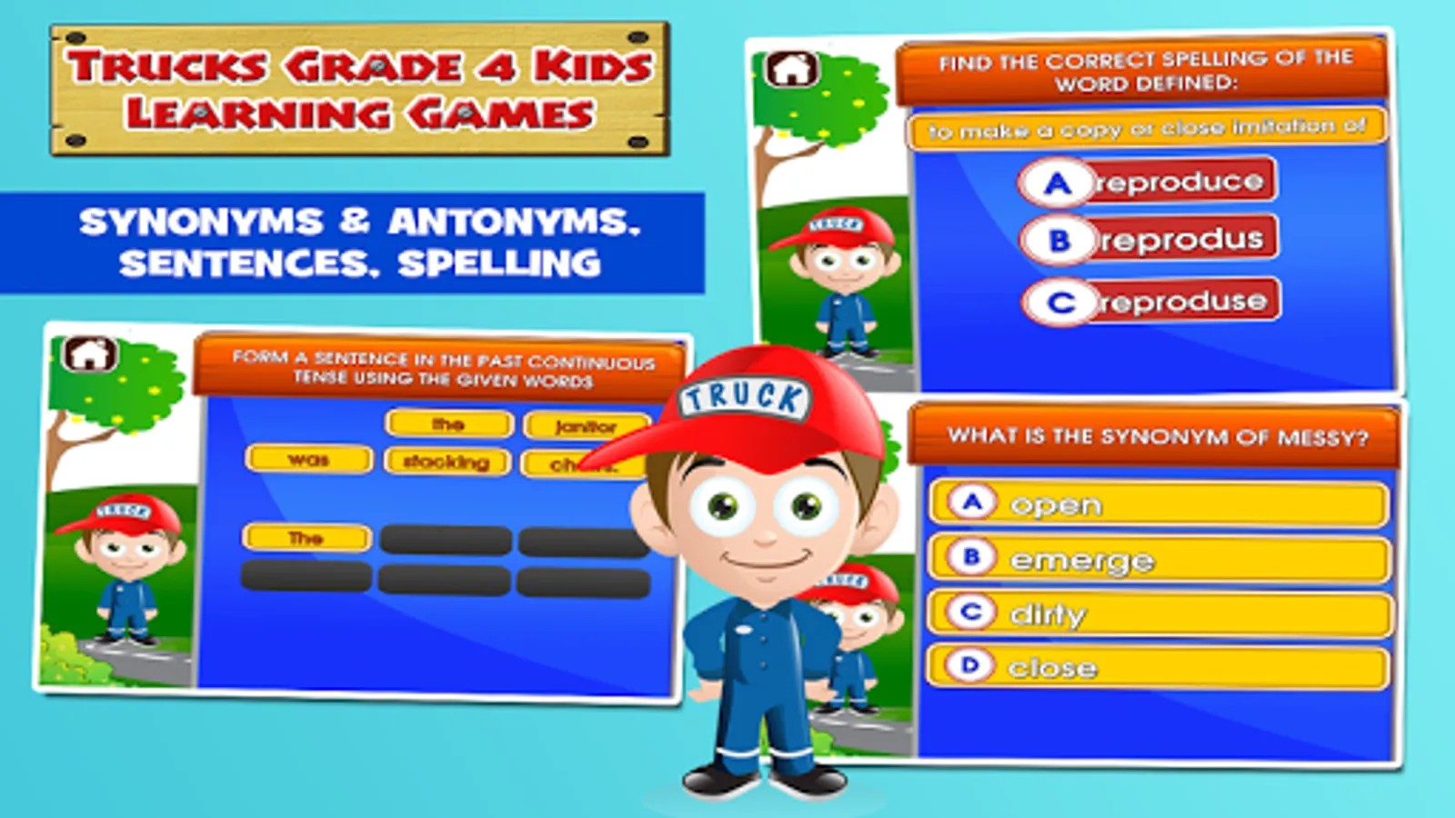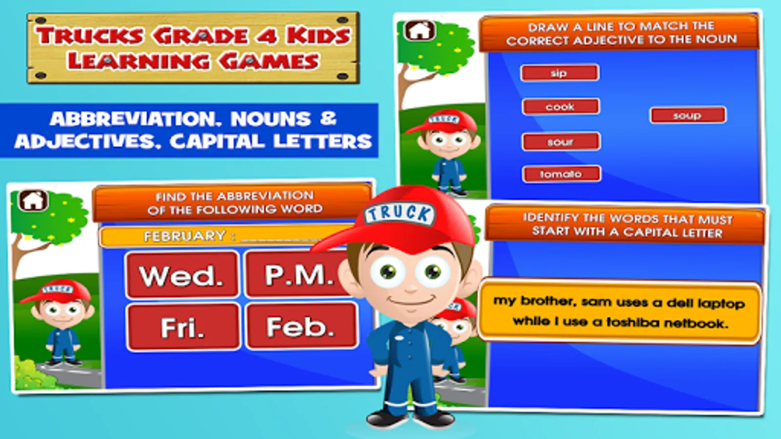 Help your child become the top of their class by mastering all the activities in this app. What a fantastic time of learning! Let the truck mechanic motivate your child with positive encouragement and playful music.