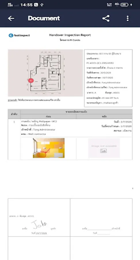 ระบบจะช่วยจัดแบ่งหมวดหมู่ของงานตรวจรับ สามารถถ่ายถาพ Before และ After ประกอบ พร้อมวาดภาพระบายสี หรือเขียนวงกลมแสดงตำแหน่งที่เป็น Defect ทั้งยังสามารถเซ็นต์ชื่อผ่าน iPad และข้อมูลพร้อมถูกส่งให้กับหน่วยงานที่เกี่ยวข้องได้ทันที ผู้บริหารสามารถดูรายงาน Dashboard ภาพรวมทั้งหมดของโครงการ สามารถนำข้อมูลไปวิเคราะห์เพื่อบริหารจัดการได้อย่างรวดเร็ว