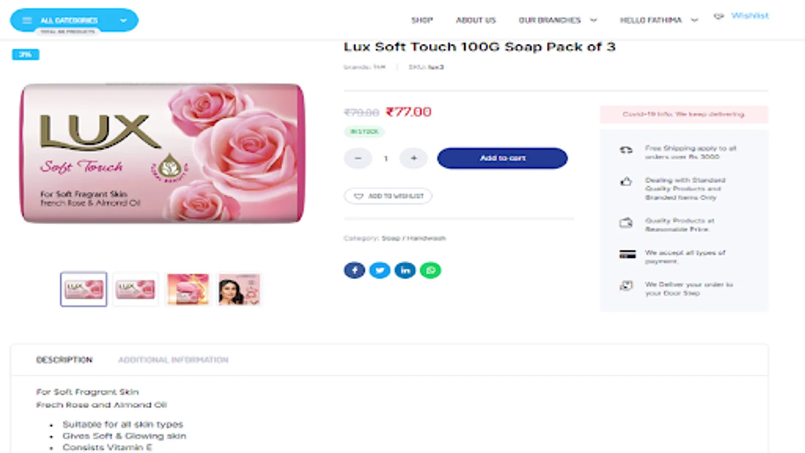 National and International Brands: We have brands like Surf excel, Amul , Aashirvaad, Fortune, Cadbury, Mother Dairy, Nandini, Brooke Bond, India Gate, Maggi, Comfort, Gold Winner, MTR, Ponds, Dove, Colgate, Ariel, Whisper, Horlicks, Dettol, Kissan, Dabur and Himalaya available at our stores.
