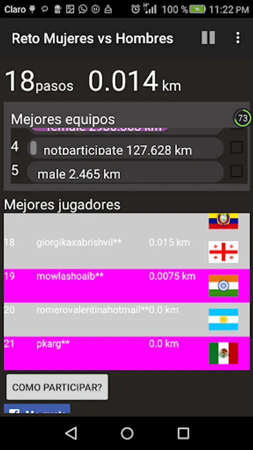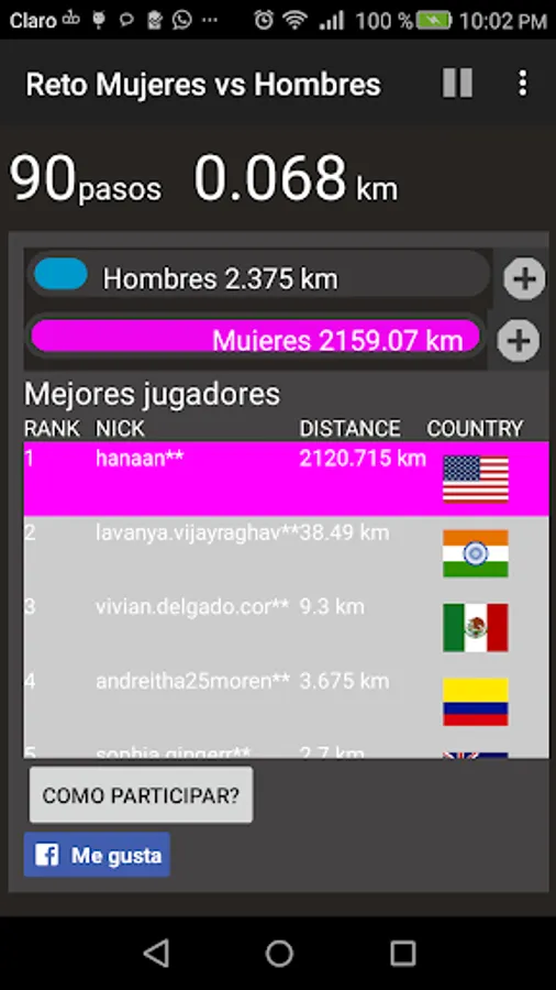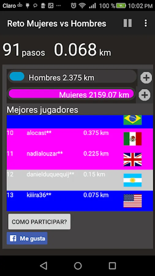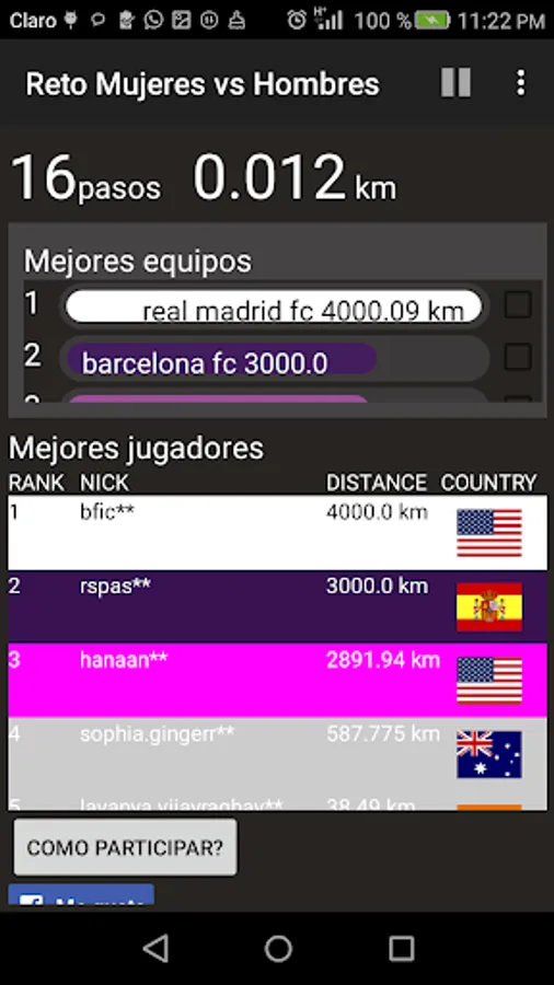 Any hike counts, on the way to work or home. Join the challenge.Run walk or bike, All count. Another form of war of the sexes.Podometer style application.Challenge women vs men.Run walk or bike, All count.Burning calories competing for your gender.Train as part of a competition.Step counter.Real Madrid, Barcelona, Chelsea, Manchester United