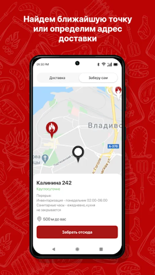 Save time and pre-order for self-delivery in our new application or order delivery to your home or office.