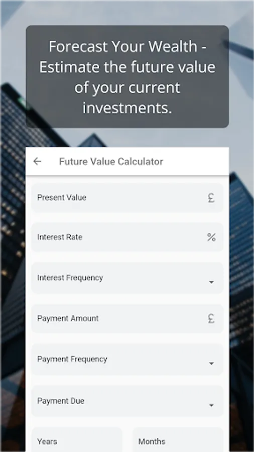 Fincal - Financial Calculators is your personal finance companion, designed to simplify financial planning and help you make informed decisions about your investments. With Fincal, you can calculate future values, compound annual growth rates (CAGR), present values, and much more with just a few taps.