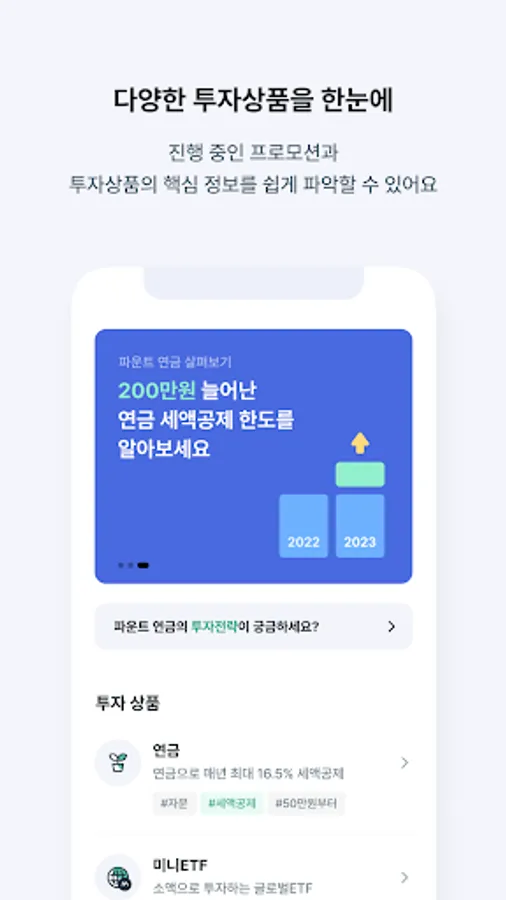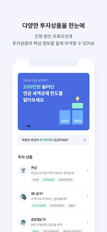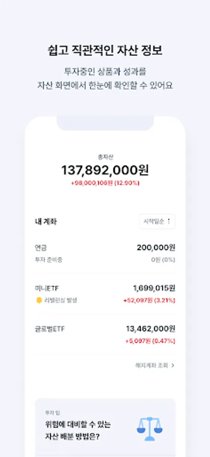 You can check the products you are investing in and their performance at a glance on the asset screen.
