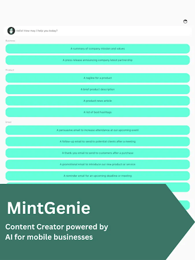 MintGenie is a content creation tool designed specifically for mobile businesses. In today's fast-paced world, where business operations are increasingly conducted through mobile devices, MintGenie streamlines the content creation process by selecting and presenting top business content prompts to content creators.