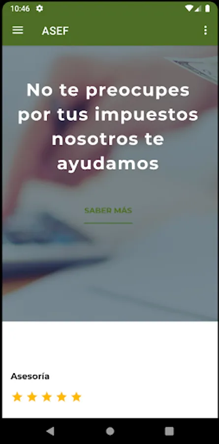 ASEF is a company that advises you on all your tax obligations, financial advice and licensing procedures. Through our APP, you can have quick access to all your tax documents and licenses, so you can use it.