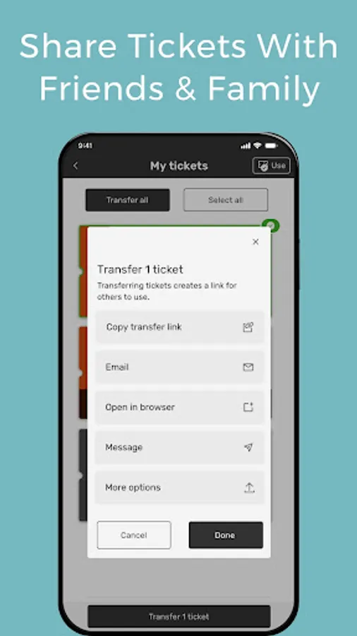 Easily transfer tickets to friends or family with a text or email.