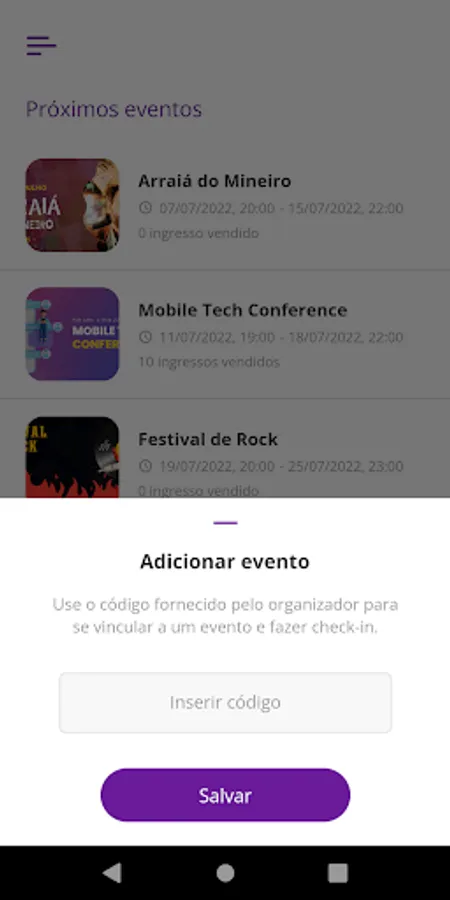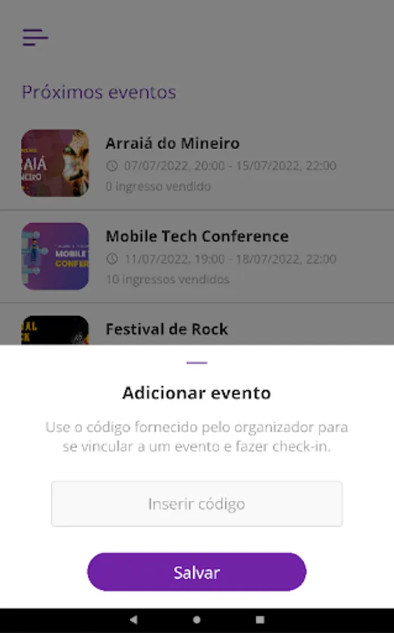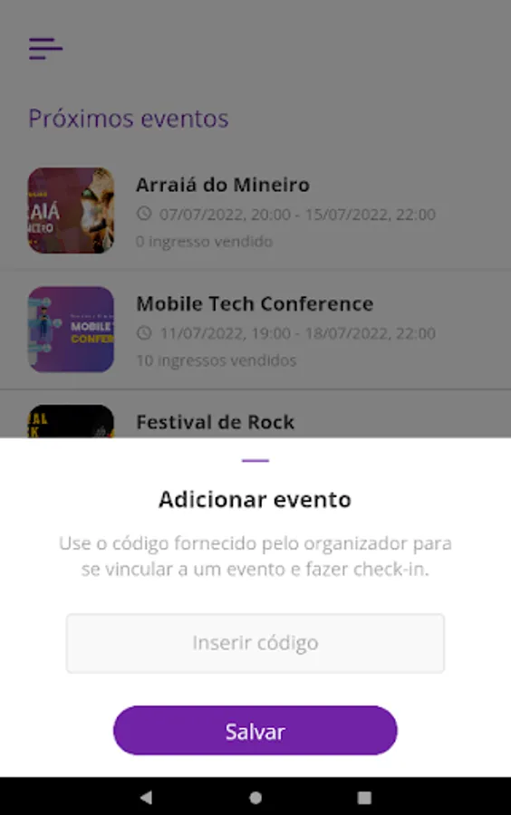 There is no user limit, allowing the organizer to give access to the app to as many hostesses as they want. To register check-ins within the app, it is necessary to enter the event code. Login to the app can be done through a facebook account, google or self-registration.