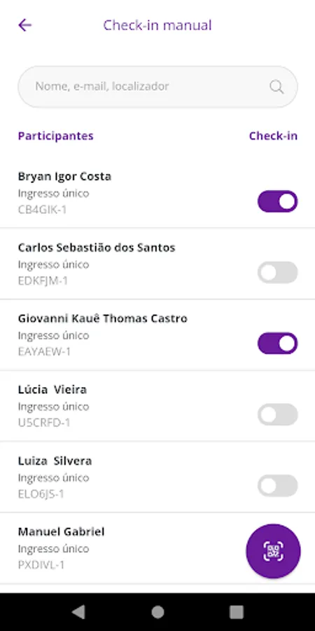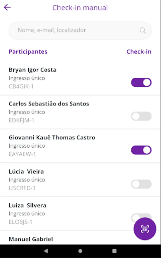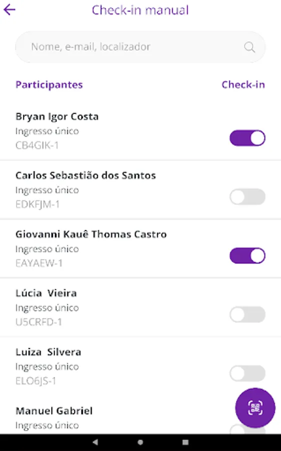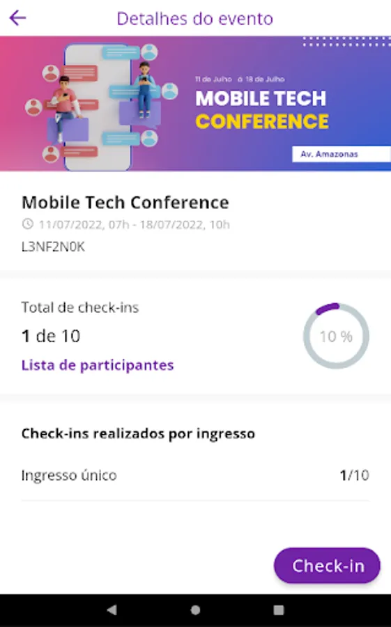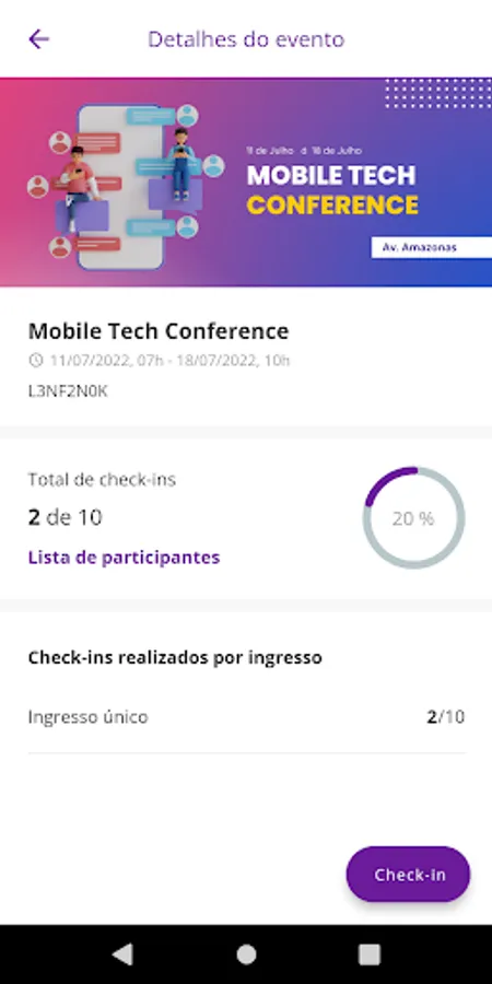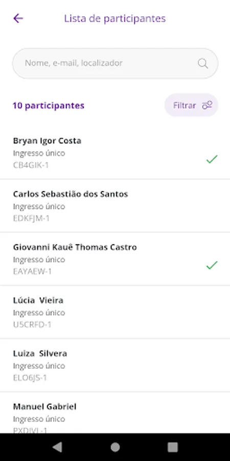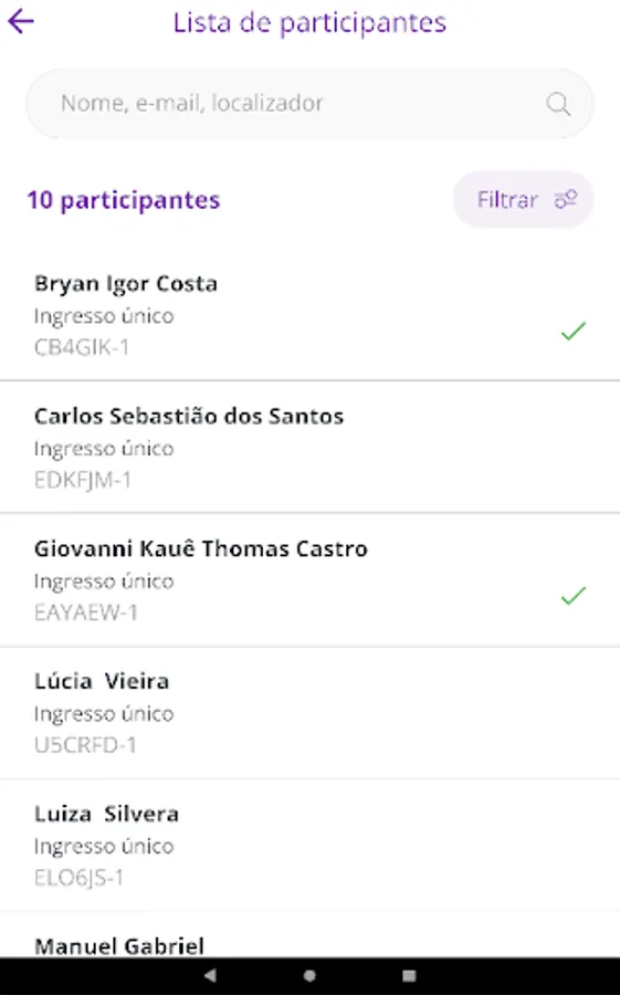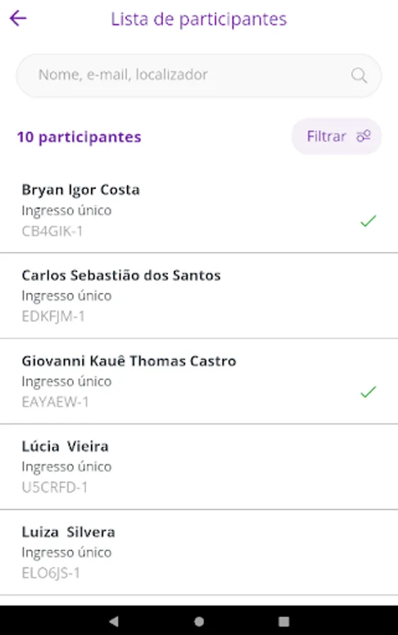 It is possible to monitor, in real time, the list of participants and the number of check-ins made. It has a filter to search for completed and unfulfilled check-ins.