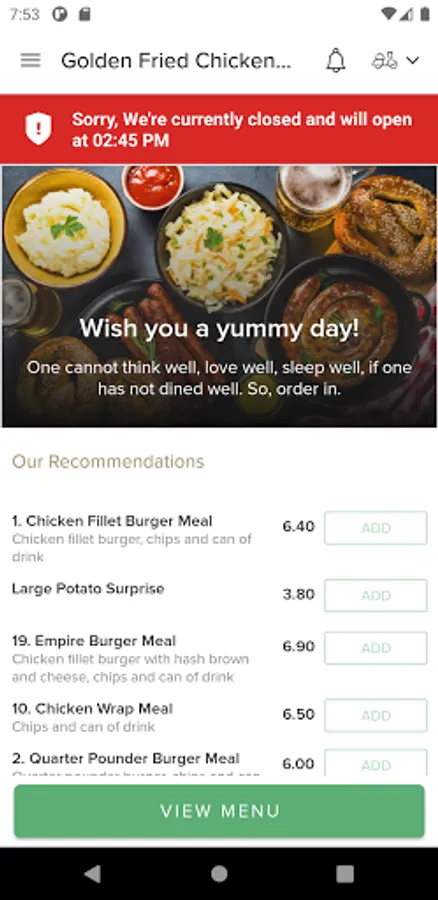 Here at Golden Fried Chicken & Pizza, we are constantly striving to improve our service and quality in order to give our customers the very best experience. As a result, we are finally proud to unveil and introduce our latest improvement, our new online ordering app! You can now relax at home and order your favourite, freshly prepared meals from Golden Fried Chicken & Pizza. You can even pay online!