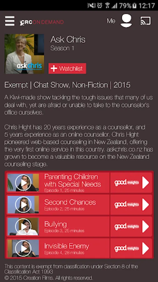The CRC On Demand Player lets you view your library, watch your movies and tv shows, and play our free titles. Your Watchlist is a great place to keep track of the titles you want to watch next.