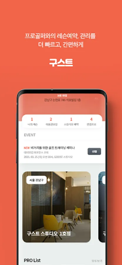 - You can check your reservation schedule with current events, new studios, and popular pros at a glance.