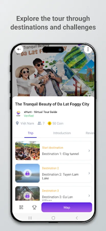 The xHunt app will become your trusted virtual tour guide, providing detailed information and directions to the destinations you're interested in. You just need to choose the tour that suits your interests and xHunt will accompany you throughout the journey.