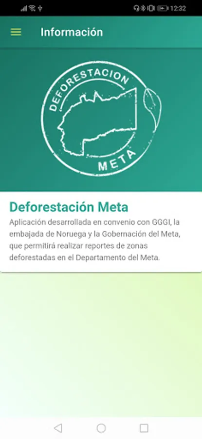 In the application you can generate geolocated reports associating photos of deforestation events that occur in the department of Meta. You can report events such as deforested areas or felled trees by associating a description anonymously or with your personal data.
