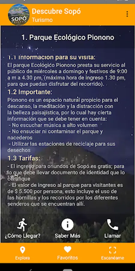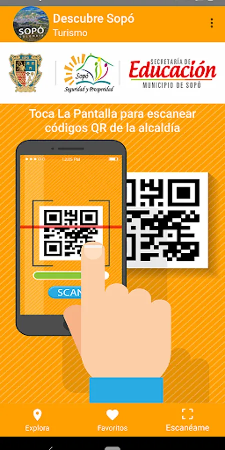 The application has the integration of QR code reader to scan codes of the Municipal Department of Sopó and convert them into multimedia content.