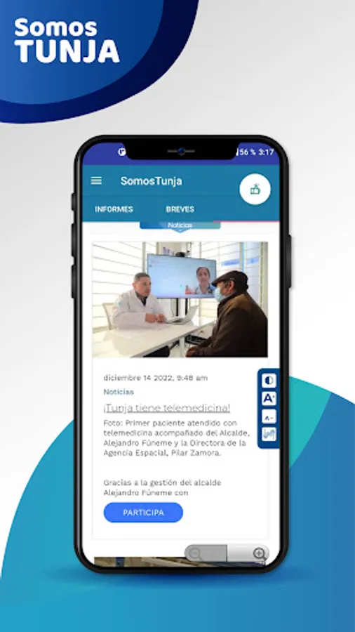 'SomosTunja' will allow you to act promptly and aggressively against the prevention, control and reporting of actions carried out by the Municipal Administration, know the Development Plan, progress reports on management, prevent corruption, monitor spending and public investments, participate in virtual forums on decisive issues for the development of the municipality, access social networks and daily news. From here you can be an active subject of participation and citizenship.