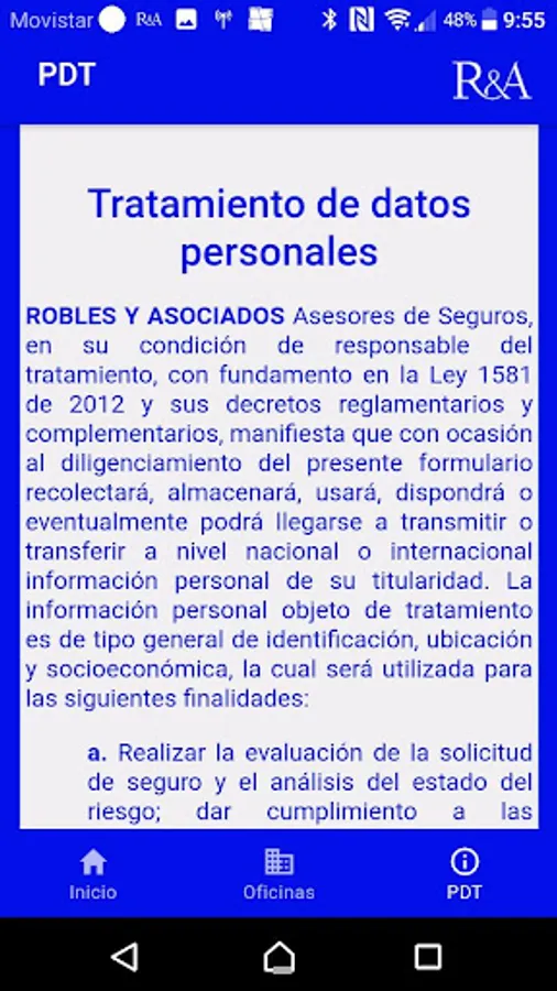 Application that allows you to know all the services and products of Robles y Asociados. You can find functionalities such as: