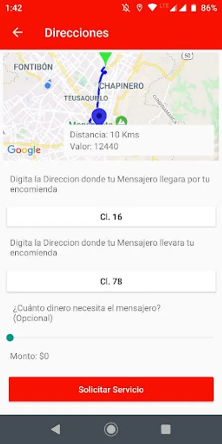 Remember if you want to request a courier in a different direction where you are, you must move the map and place the cursor in the position where you want the service to be performed.