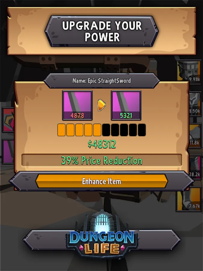 Dungeon Life features an infinite progression system similar to the casual/idle game genre in which the player will always be able to continue to find more and more loot and gold.