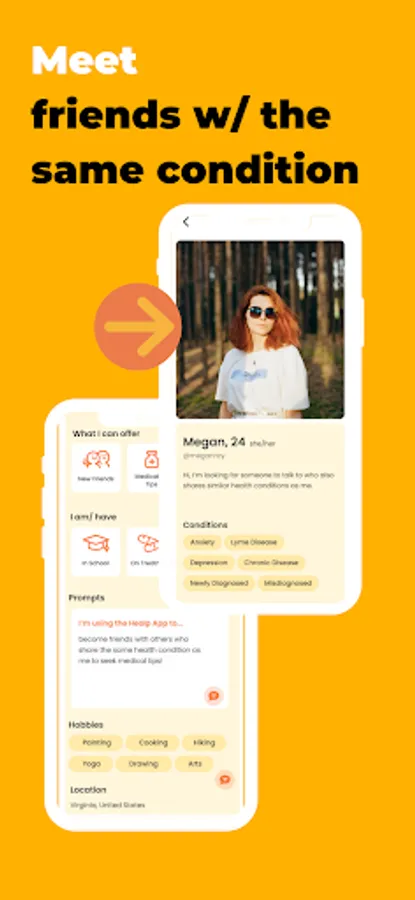 Social Network: Healp helps you find friends who have the same health conditions as you. With Healp, you can create a profile and share information about your age, location, hobbies, and medical conditions. Afterward, we will match you to friends with similarities.