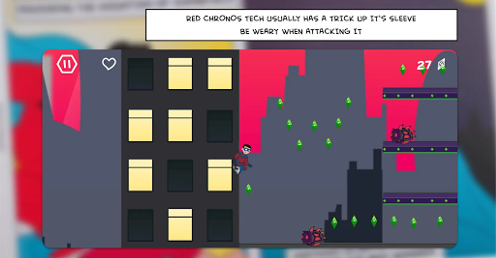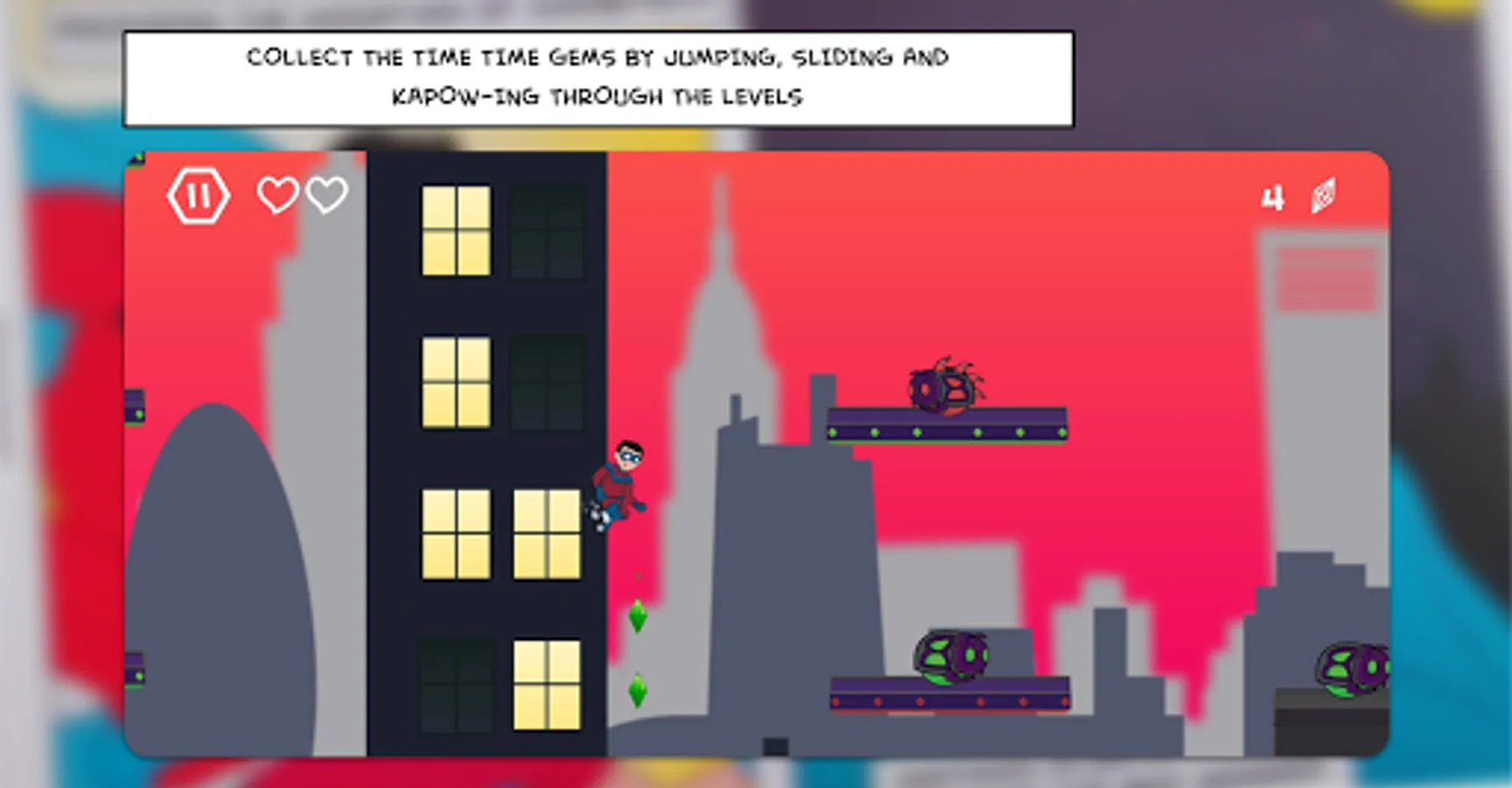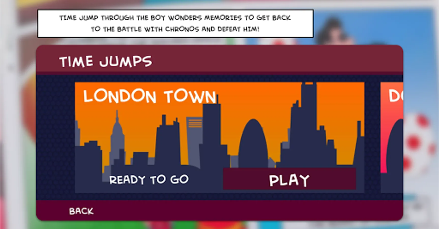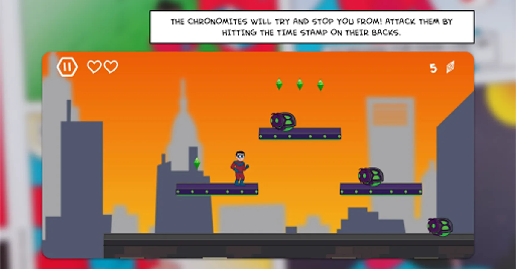 Help the Boy Wonder jump back through time by collecting the time gems and send Chronomites back to the main timeline, and ultimately defeat Chronos and save Matman!
