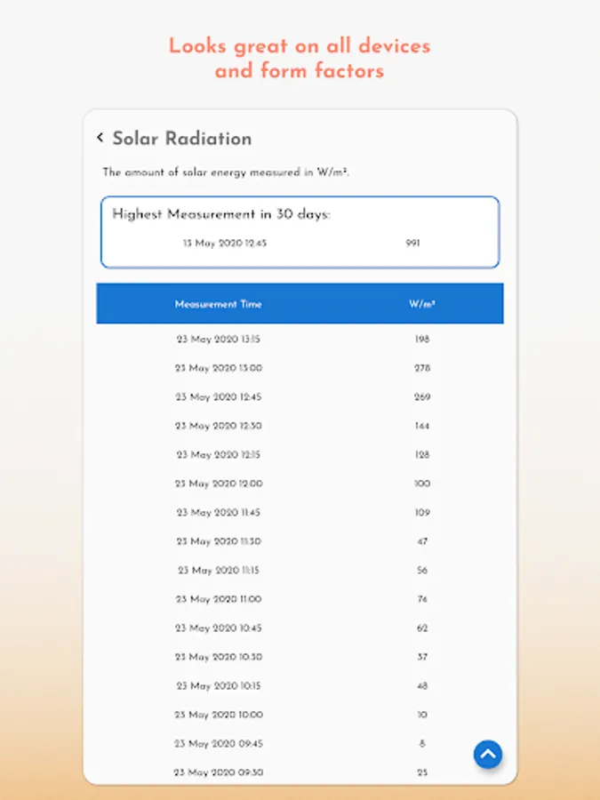 The weather station and data connection were supplied and implemented by Three, links to their web dashboard and the full 30 days of data also feature in the app.