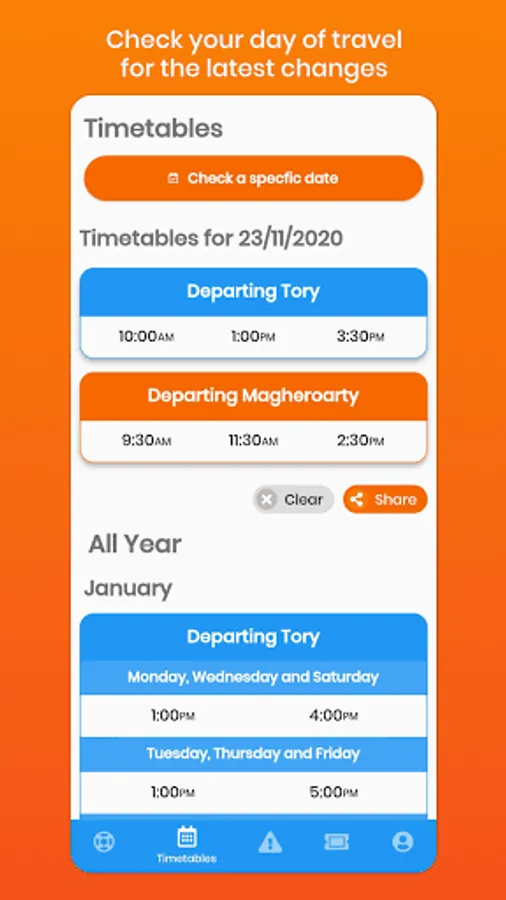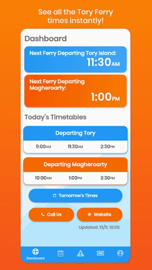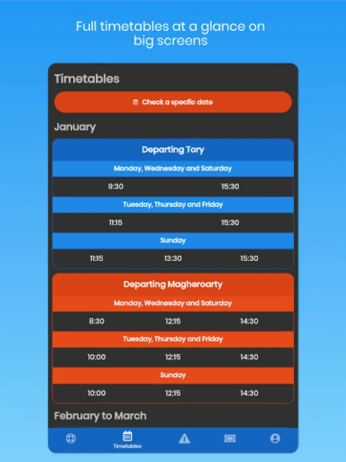 • Viewing the next ferry times, from Tory and Magheroarty.