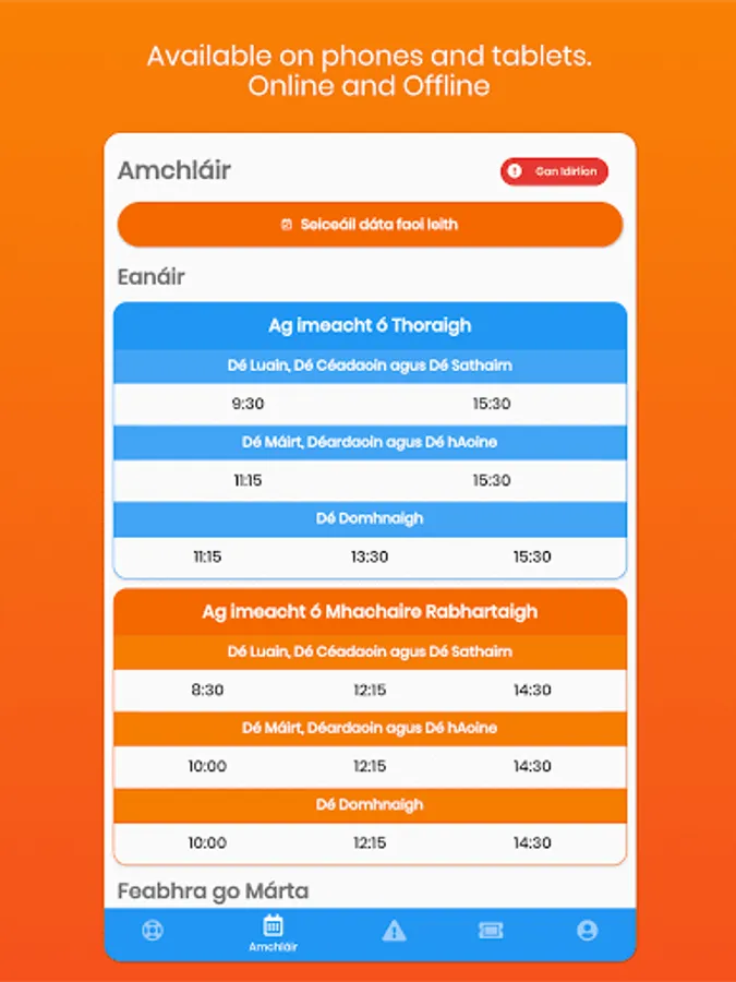 All the latest times are updated instantly on your phone and the app is available in English and Gaeilge!