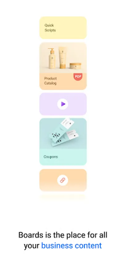 Selling products from your phone? With Boards you’ll be able to sell smarter and improve customer interactions with easy access to content you need for your customers, all in one place. Add product catalogs, video tutorials, sales pitches and anything else you may need to send to your customers, to your board and access it all in one click!