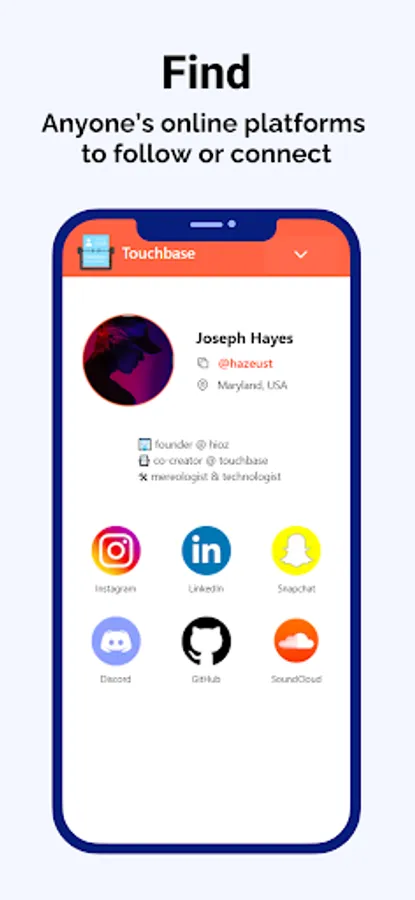 The average person has 8 platforms, so the next time you’re asked "Where can I find you online?", just say Touchbase and let us handle the rest!